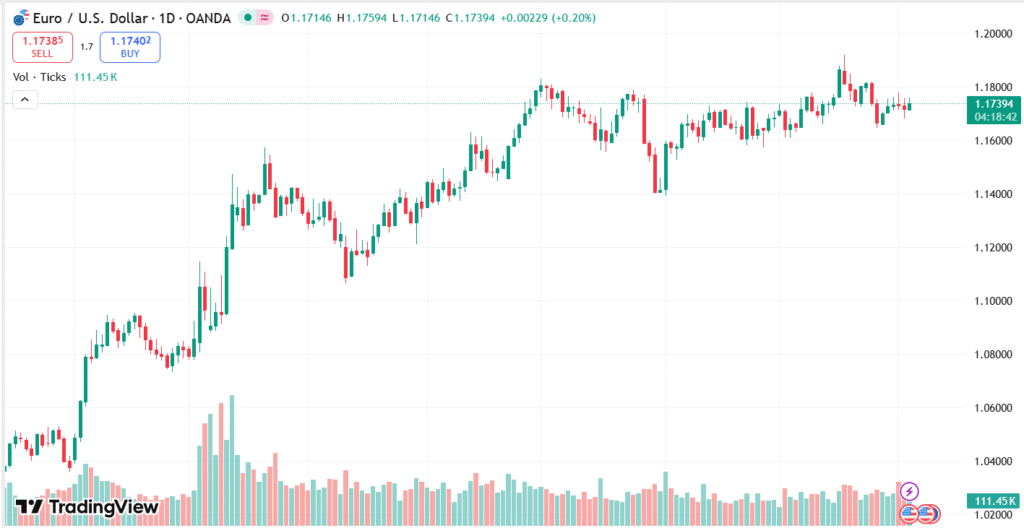 EUR/USD has been trading steadily near 1.1745 as market players evaluate economic events both in the US and Eurozone. The US Dollar is weakening on the back of the prolonged government shutdown, raising concerns regarding short-term fiscal stability and economic growth. On the other hand, the mixed US data, such as a weaker services activity and muted labor demand, have supported nervous sentiment among traders.