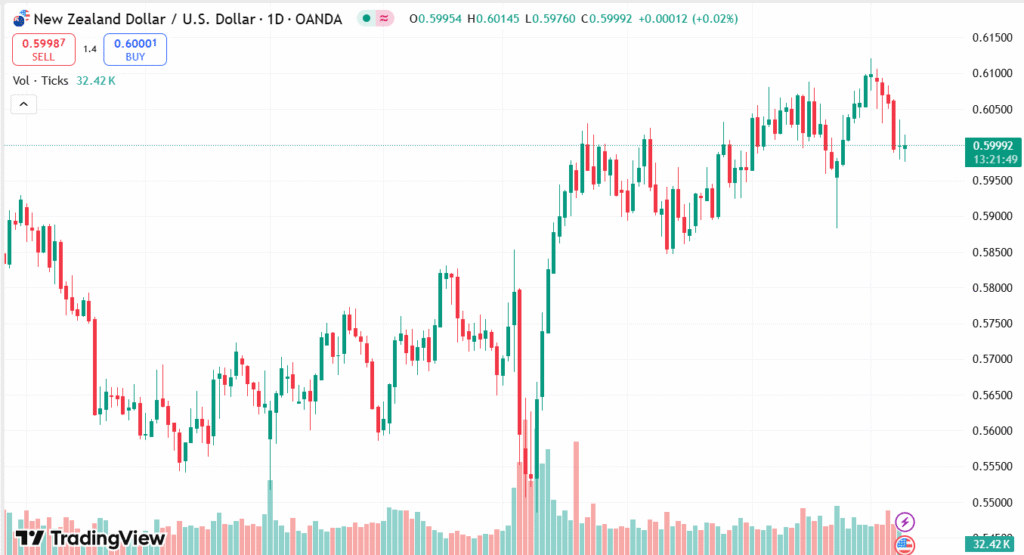 • NZD/USD touched 0.6015 briefly but reversed sharply, indicating weak bullish conviction.